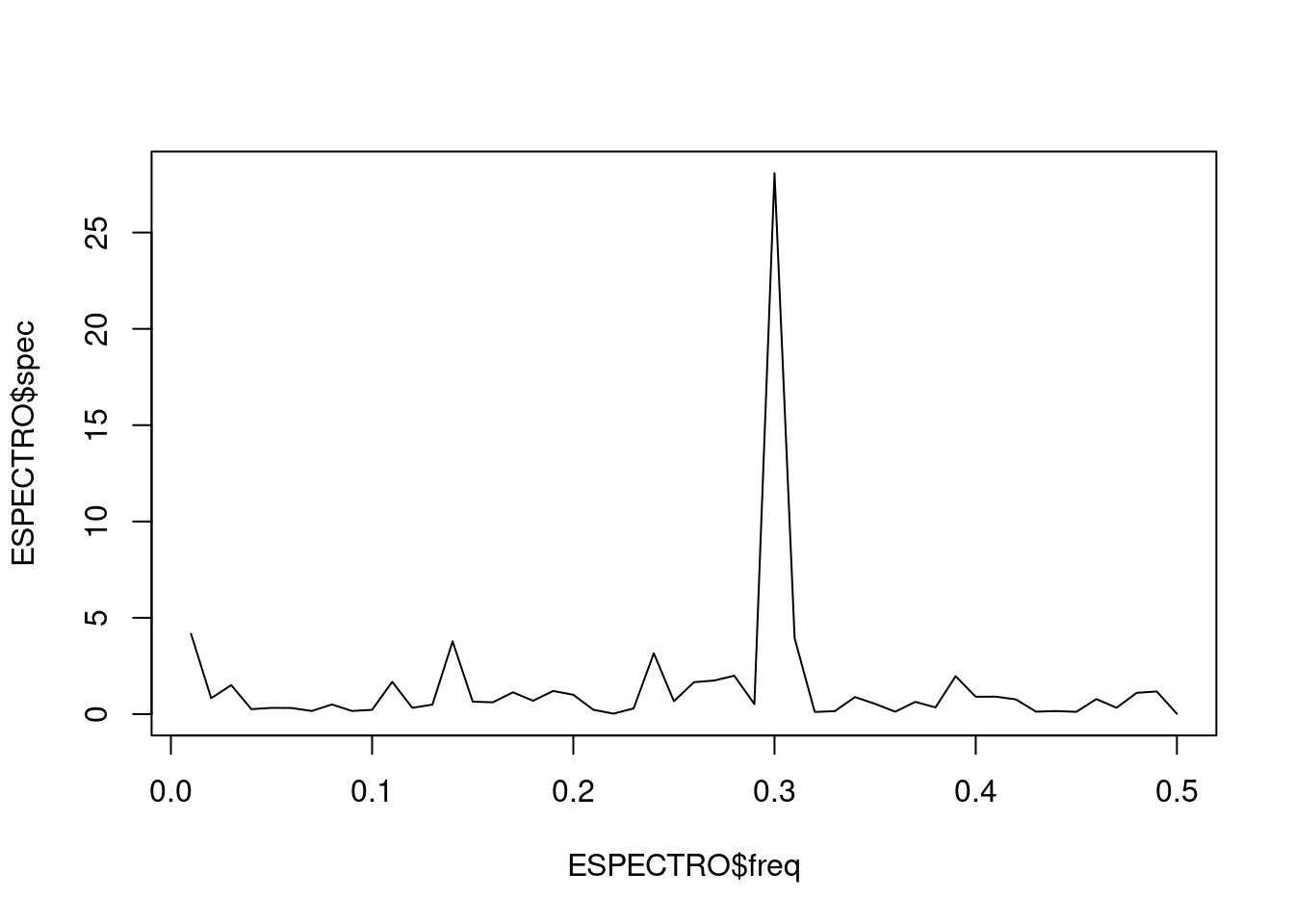 plot(ESPECTRO$freq, ESPECTRO$spec, type = "l")