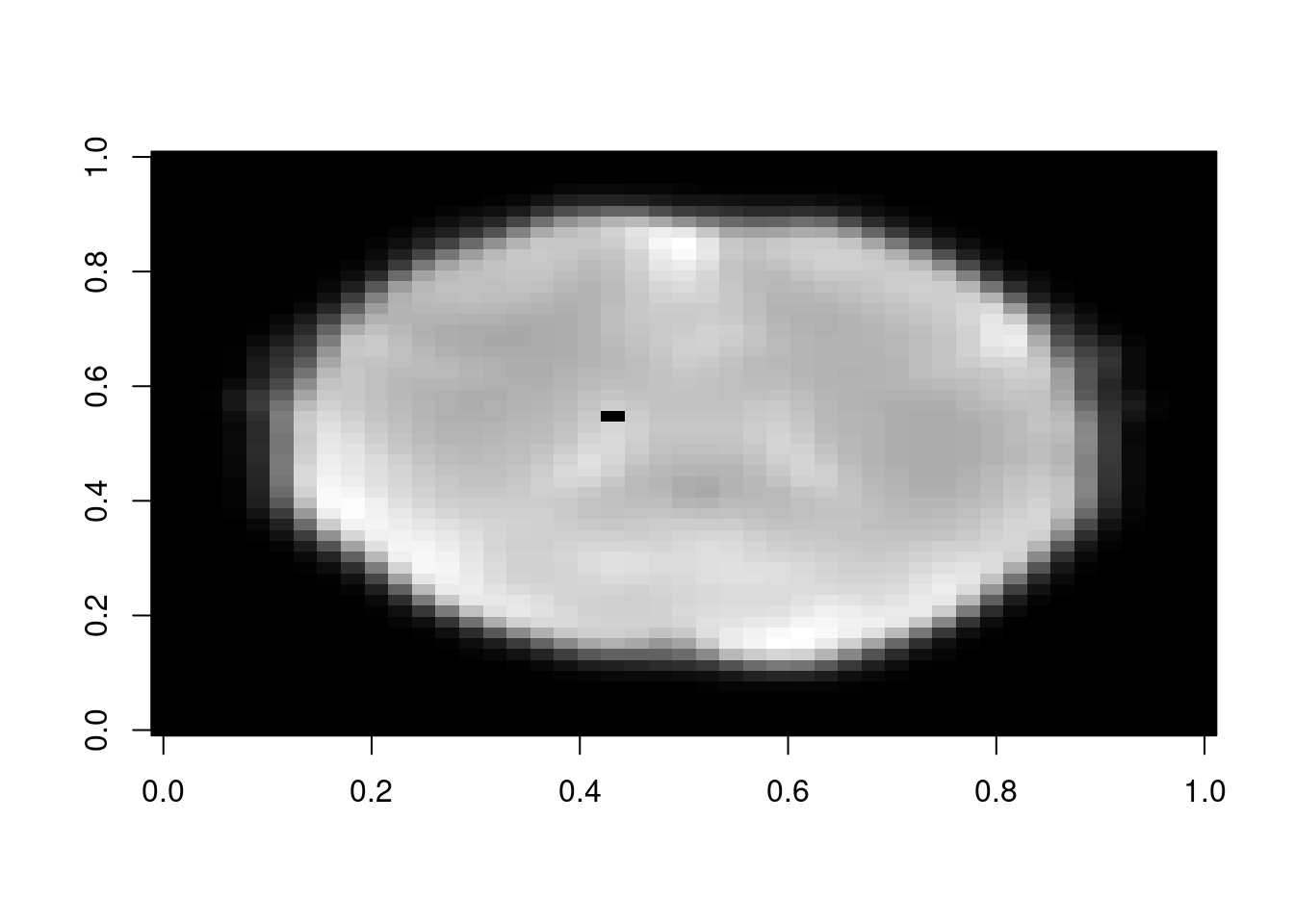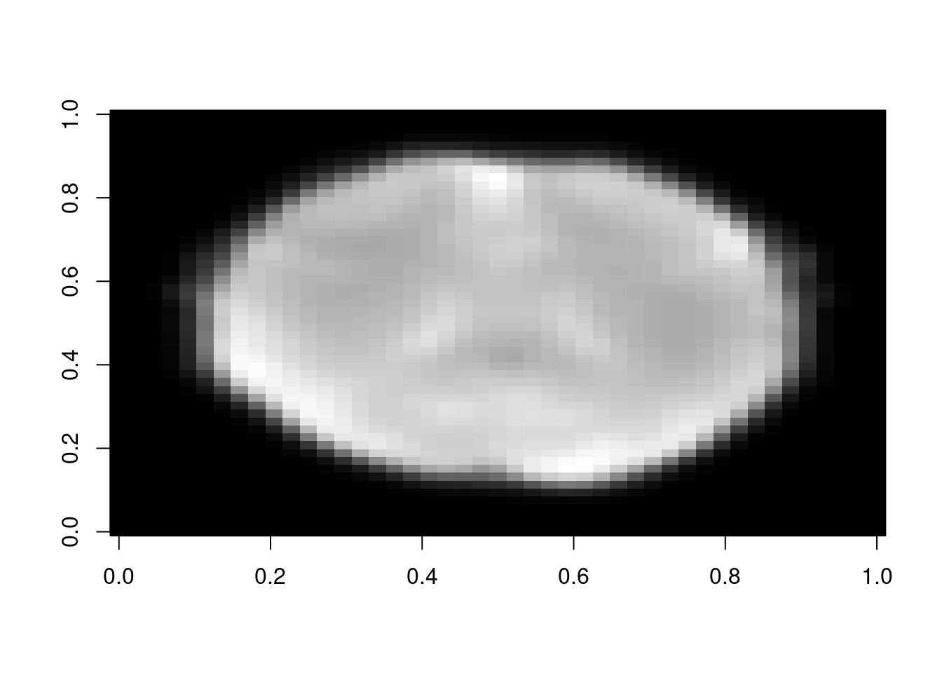 image(volumes[,,25,1], col=gray((0:100)/100))